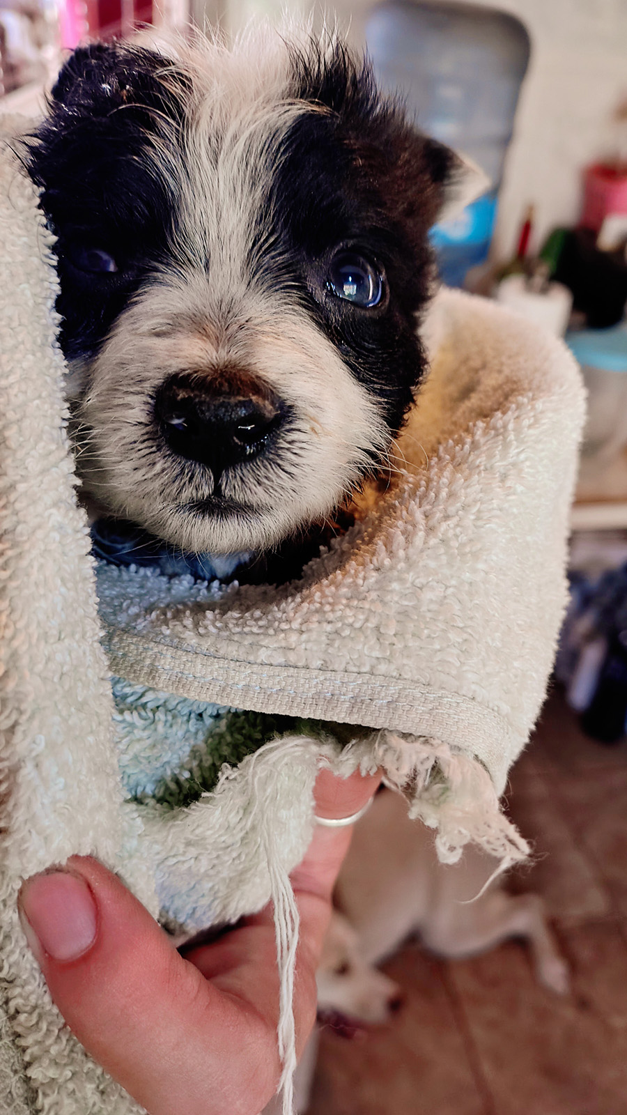 Dès que mon regard a croisé les yeux bicolores de Pitchoune, ça a été le coup de foudre — pour moi, pas pour elle. Elle avait peur des humains. Mais malgré tout ce qu’elle a traversé, elle est restée d’une douceur et d’une joie désarmantes, au point de faire fondre tout le Rancho.