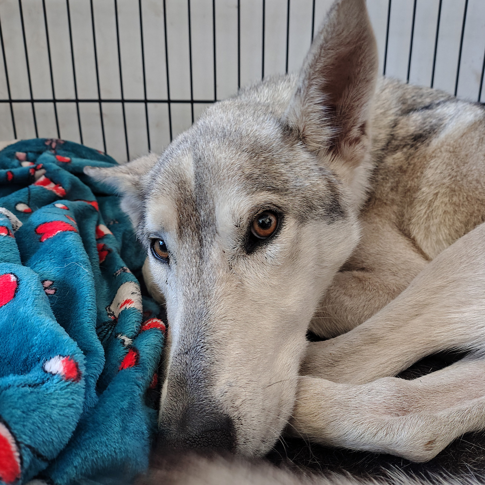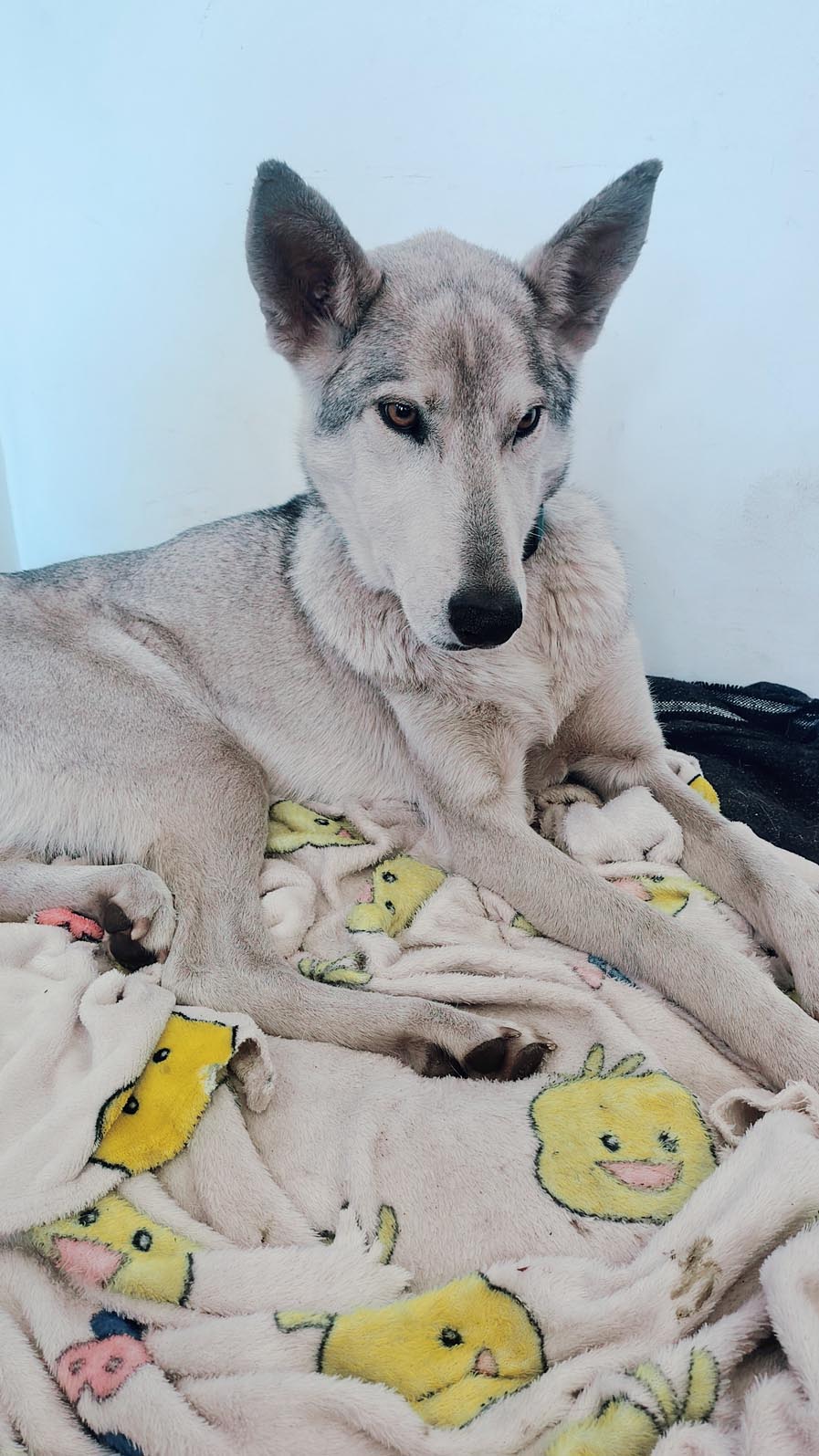 The recovery was long. For the first twenty-one days, I carried her four times a day so she could go outside. She ate six small meals a day. I gave her her treatment, and every evening I massaged her legs to help blood circulation. In front of me was a dog who barely reacted to anything. Almost absent.
