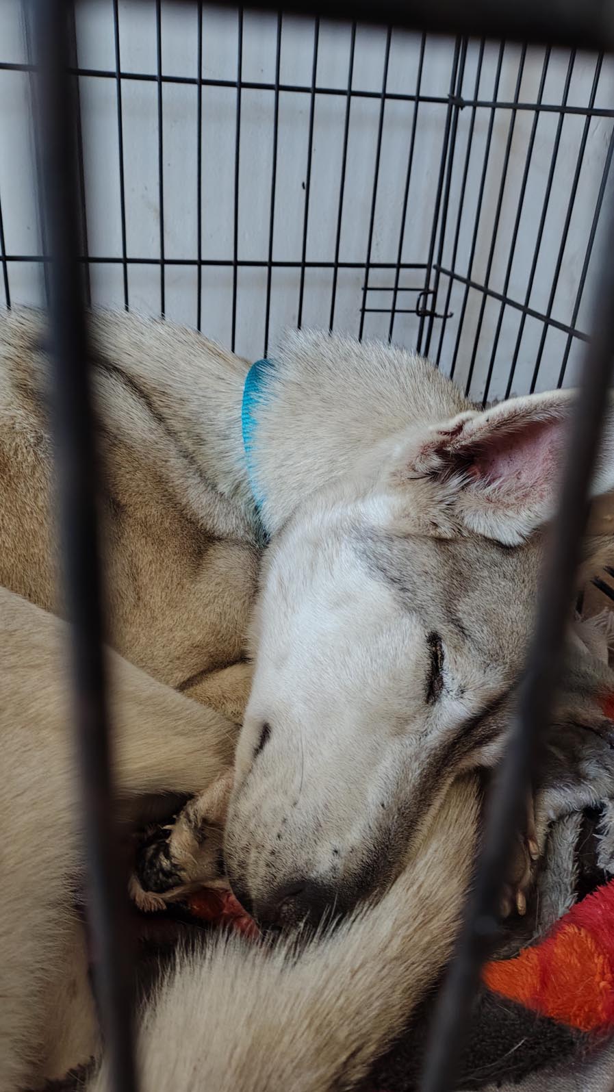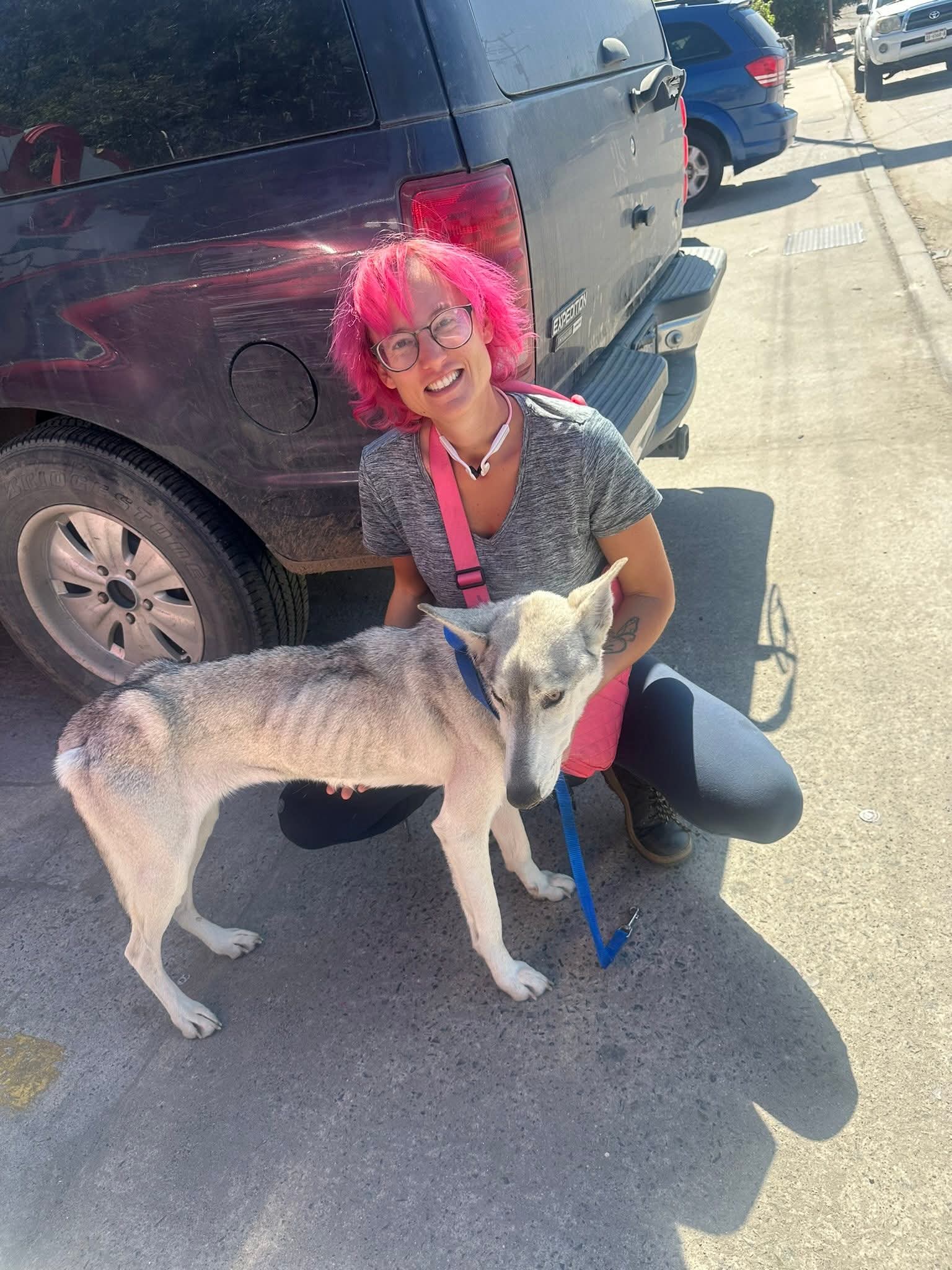 Athéna came into my life because of a photo. A photo that made my heart jump. She was close to death, abandoned in a touristic town where everyone walked past her without stopping. I had the space to take her in, but I couldn’t go get her myself. Six hours of driving and a whole pack to leave alone. Another rescue stepped in and brought her to me.