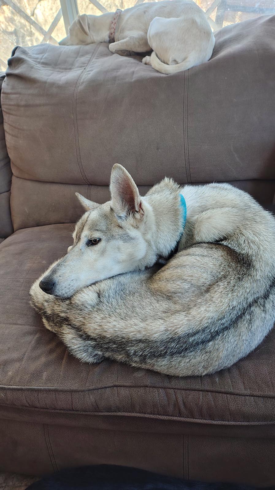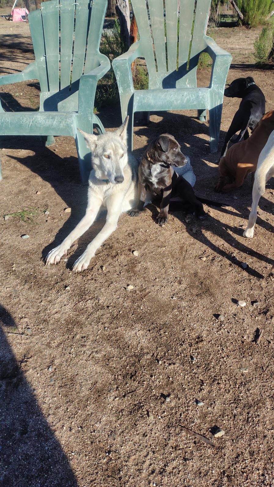 Then the puppies arrived. They stuck to her because she was calm, stable, an adult. Little by little, she opened up. Today, she wiggles when she sees me. I get lots of kisses. All the puppies and fragile newcomers invade her space, steal her bed, climb on her, sleep pressed against her.