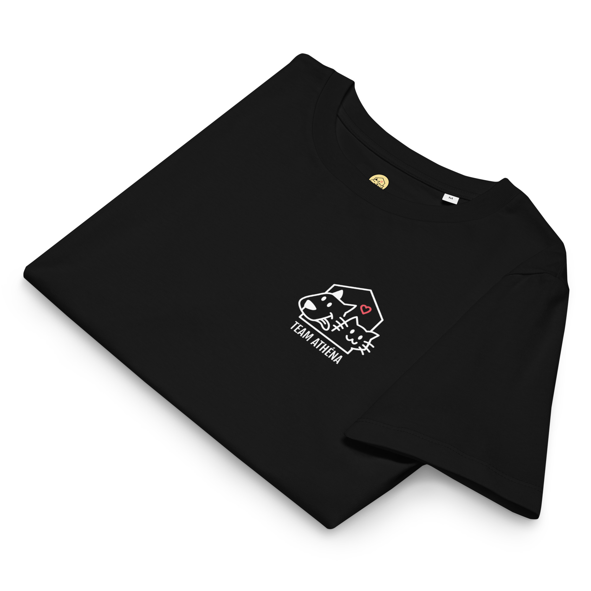 Porter le t-shirt Team Athéna c’est porter son histoire. Celle d’une chienne qui a tout vu, tout survécu, et qui te regarde maintenant avec cet air qui t’évalue. Parce qu’elle a tout connu — la trahison, l’abandon, l’horreur. Et que maintenant elle choisit avec soin ceux qui sont dignes de sa confiance.