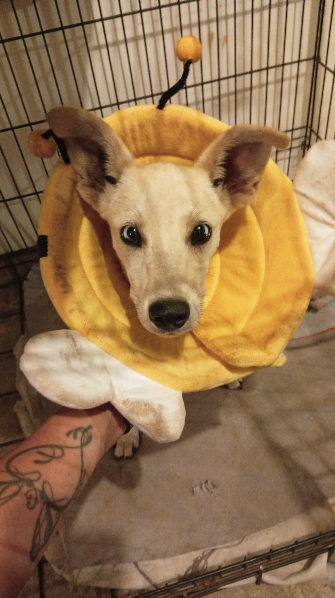 Tout a commencé par un simple post sur Facebook : une petite chienne blessée, avec une plaie béante qui traversait la moitié de son dos.