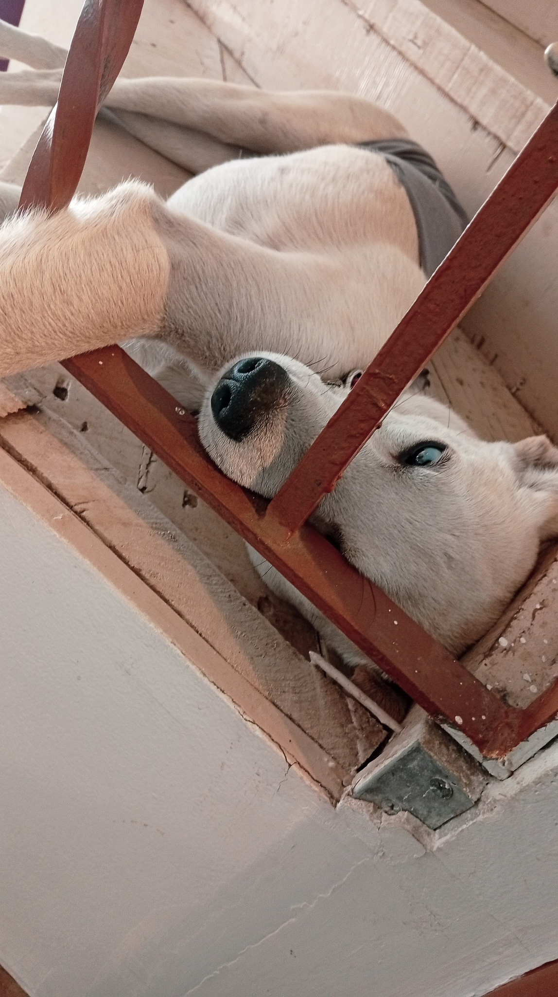 C’est une vraie chienne de meute, toujours entourée, qui a su se faire aimer de tous les autres poilus. Elle a vite compris comment ça fonctionnait ici, et elle est sous la protection inconditionnelle de mes grands gaillards.